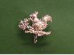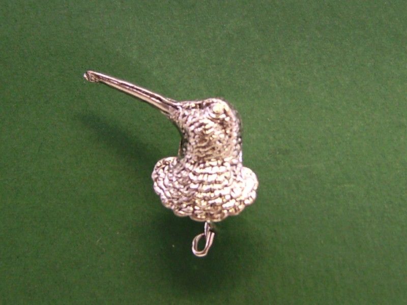 Diese Federhülse hat eine Anstecknadel auf der Rückseite sowie eine spezielle Vorrichtung zum befestigen der Federn.