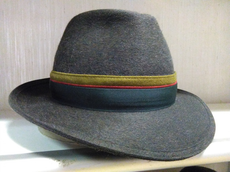 Sehr schöner Jg.Hut mit der Krempe hinten oben und 3.-färbigen Garniturband in bester Haarqualität.
