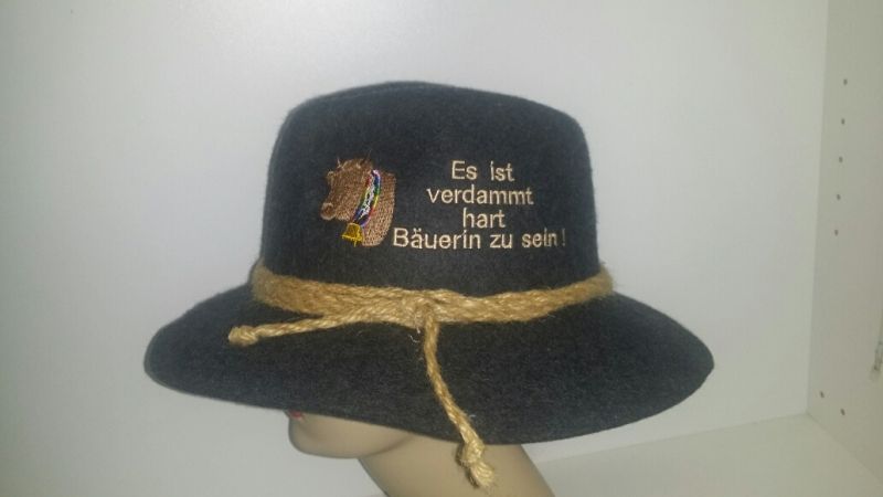 SEILHUT KUHKOPF MIT DEM STICK " ES IST VERDAMMT HART BÄUERIN" ZU SEIN.