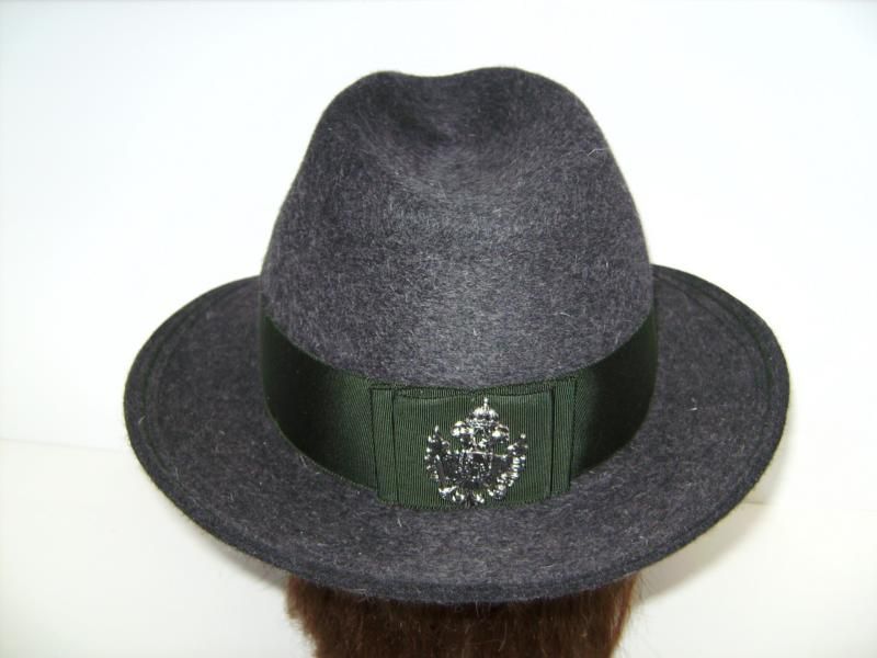 - klassische Ausseerform, hinten aufgebogen - Material: Hasenhaar - Anstecknadel auf der Rückseite: Kaiseradler - Farbe: grau